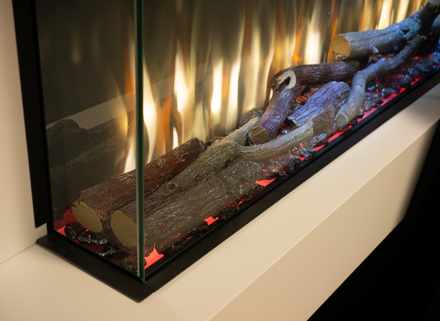 Sfeer instellen (optioneel) - Creëer de juiste sfeer in je kamer door het gebied rondom je haard te verlichten. Er zijn optionele lengtes LED-verlichtingsstrips verkrijgbaar die in je haard kunnen worden gestoken en die je in je haard kunt plaatsen of in de muur kunt inbouwen. De verlichting wordt bediend via de handset van de haard en biedt een palet van dertien schitterende kleuren die afzonderlijk van de vlam- en brandstofbedeffecten kunnen worden ingesteld (ze kunnen ook op dezelfde kleuren worden ingesteld).