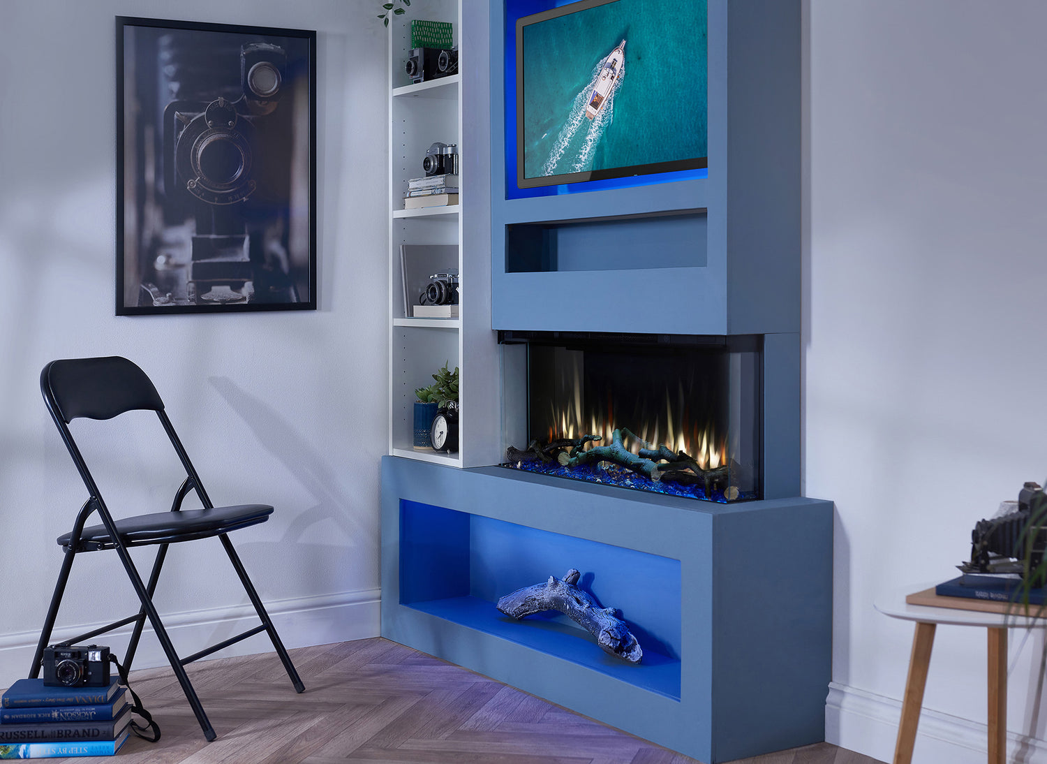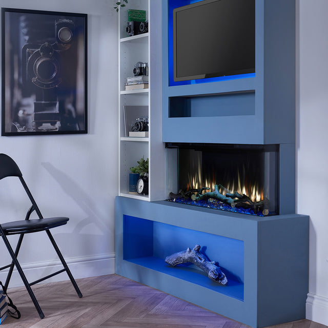 Sfeer instellen (optioneel) - Creëer de juiste sfeer in je kamer door het gebied rondom je haard te verlichten. Er zijn optionele lengtes LED-verlichtingsstrips verkrijgbaar die in je haard kunnen worden gestoken en die je in je haard kunt plaatsen of in de muur kunt inbouwen. De verlichting wordt bediend via de handset van de haard en biedt een palet van dertien schitterende kleuren die afzonderlijk van de vlam- en brandstofbedeffecten kunnen worden ingesteld (ze kunnen ook op dezelfde kleuren worden ingesteld).
