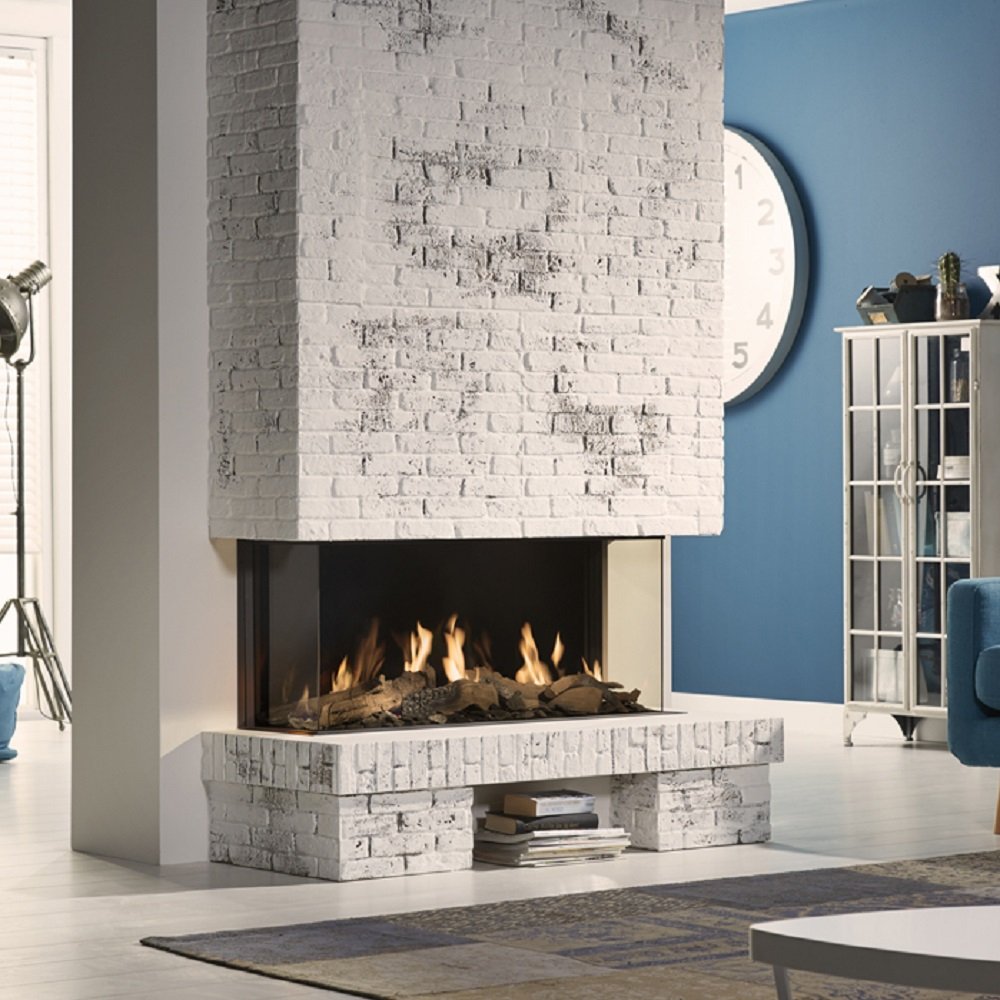 De DRU Global 100 Triple BF is een realistische, brede en sfeervolle gashaard. Het is een driezijdige haard wat ervoor zorgt dat het vlammenspel vanaf veel kanten goed te bewonderen is. Doordat de vlammen uit de houtblokken komen, lijkt het vuur levensecht. De haard heeft een breedte van meer dan een meter, wat resulteert in een panoramisch vuurzicht. Enorm veel genieten dus!