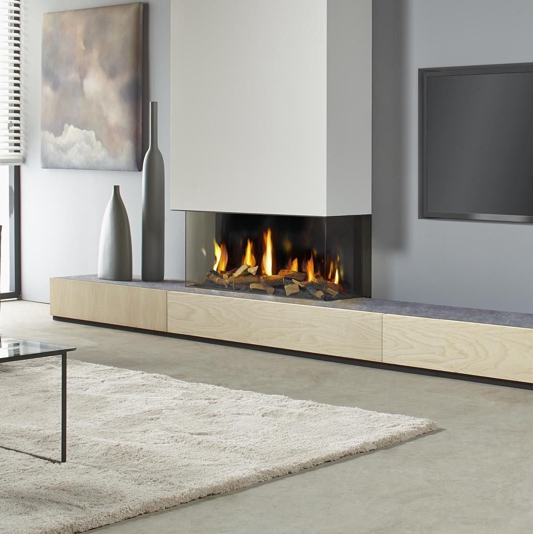 De driezijdige haard van DRU. Met deze haard heb je prachtig zicht op de vlammen vanuit bijna alle zichthoeken. Deze haard is ook als hoek variant verkrijgbaar. Door de nieuwste (EcoWave) technieken toe te passen geeft deze haard een superieur vlambeeld.