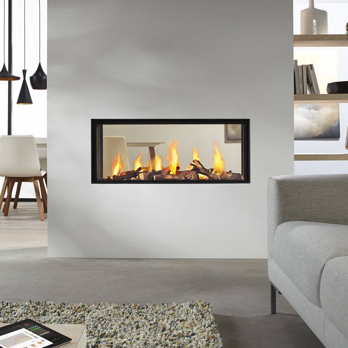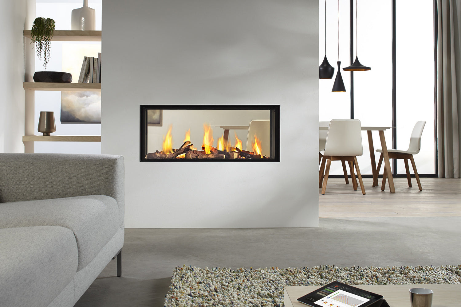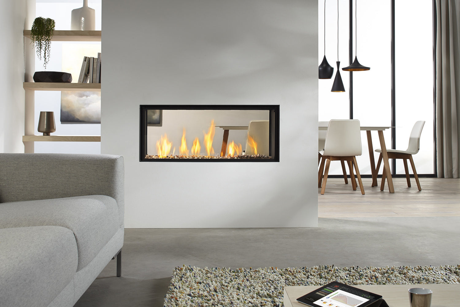 De DRU Metro 100XT Tunnel gashaard maakt het mogelijk aan twee zijden te genieten van het vuur en is daardoor uitermate geschikt als roomdivider.