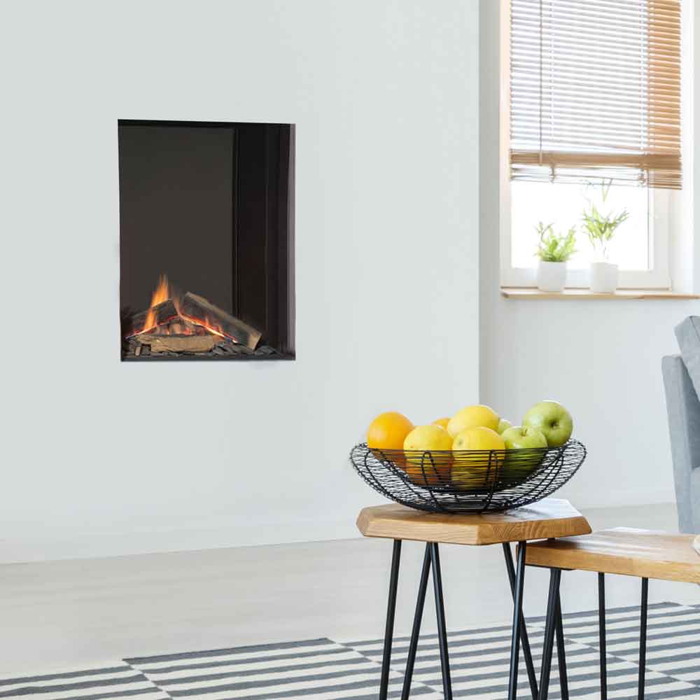 Nog een fantastische haard van Element4. De Sky Small Front ie de nieuwe en kleinste in de Sky serie van Element4. Deze kleine gashaard is net zo'n parel, alleen een stuk compacter. Naast de kleinere afmetingen van haard, ruit heeft deze gashaard ook een schitterend hoog en levendig vlambeeld. Dit vlammenspel wordt gerealiseerd door de unieke RealFlame brander. De haard kan worden uitgerust met een standaard houtset of een donkere houtset, zo is de haard aan te passen naar ieder interieur.