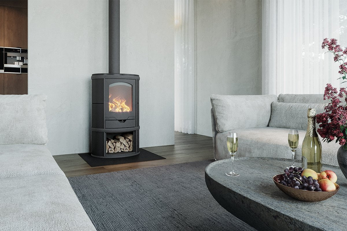 Deze Eclips Depot bevat een handig houtvak. Zo heb je altijd stookhout bij de hand. Door de extra hoogte krijgt de Eclips een mooi slank uiterlijk en komt de stookkamer hoger te liggen. Zo heb je ook vanuit een lage stoel een prachtig uitzicht op het vlammenspel terwijl u geniet van de comfortabele warmte. Deze Depot is ook leverbaar met pootjes.